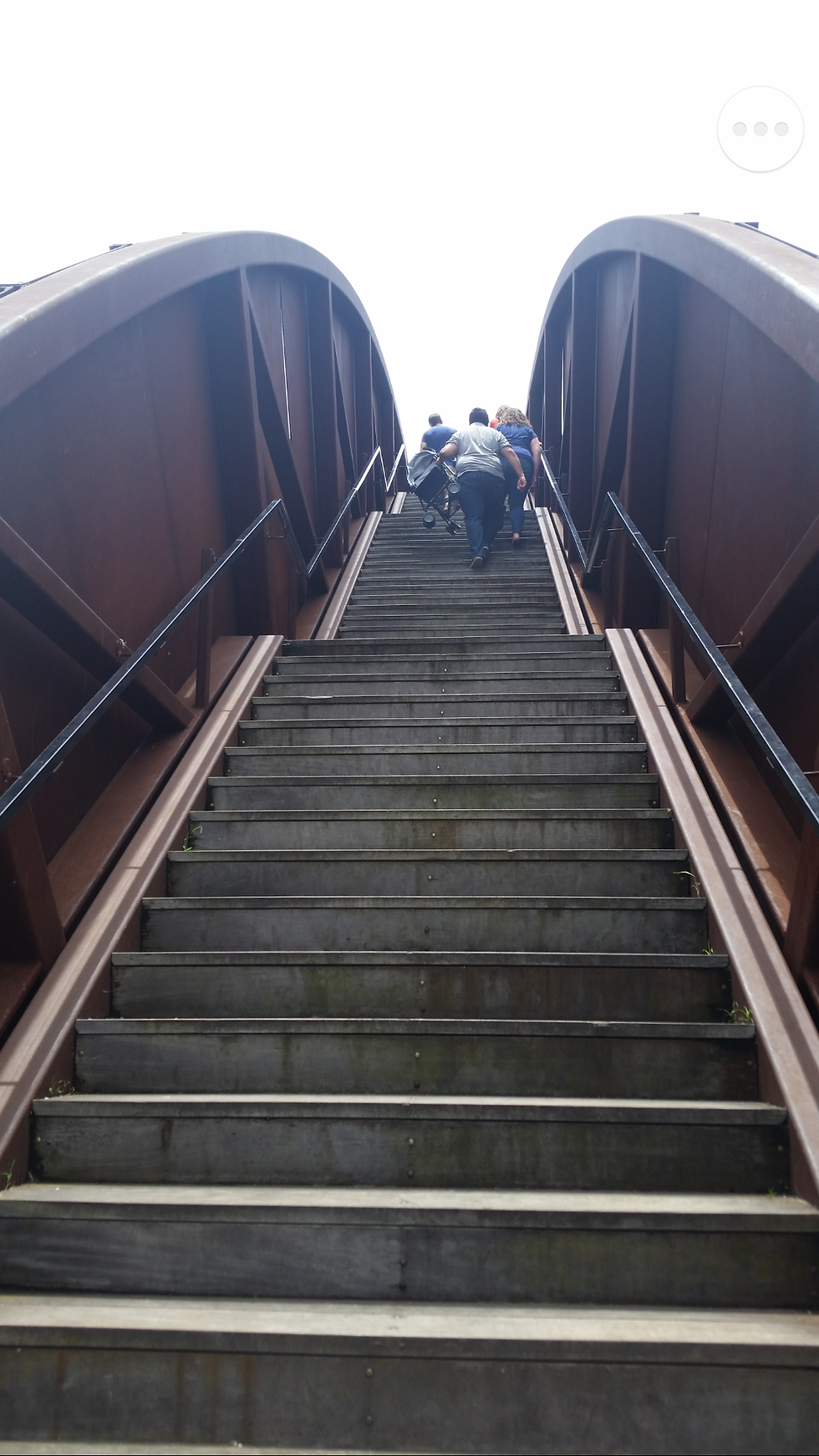 Walking up the steps of the rounded arched stairway, your view of the park is initially blocked by the high walls of the narrow entrance. As you get to the top, it opens up and you get an amazing view of the Mississippi River and of the downtown skyline.